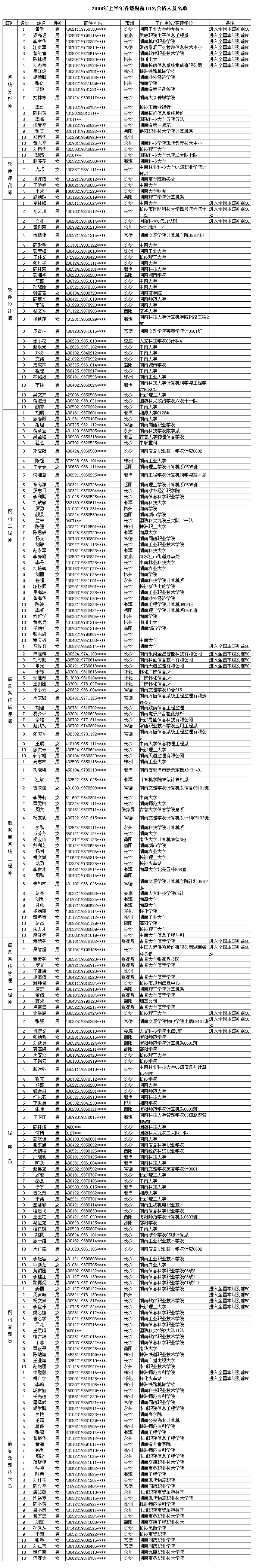 2008年上半年全国计算机技术与软件专业技术资格(水平)考试已圆满结束,湖南省各级别报考人员取得优异成绩。现将全省各级别前10名的合格人员名单公布如下。