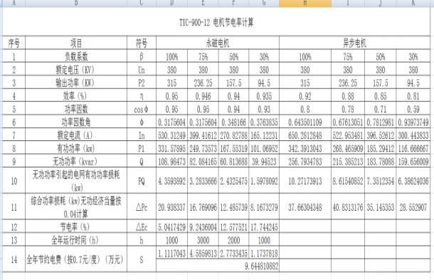 以上仅考虑电动机节能部分,由于是直驱系统,不需要减速机,考虑这部分耗能,系统综合节电率30%以上。根据客户挂表实测电机节电率达到了45.68%。