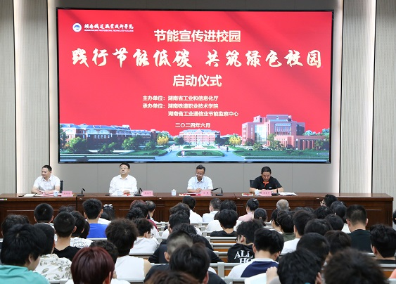 副厅长、一级巡视员张治平出席省工业通信业节能监察中心联合湖南铁道职业技术学院开展的“节能宣传进校园”活动,并深度调研校企合作相关项目。省工业通信业节能监察中心相关工作人员、湖南铁道职业技术学院师生代表及多家国内节能领域知名企业代表约300余人参加活动。