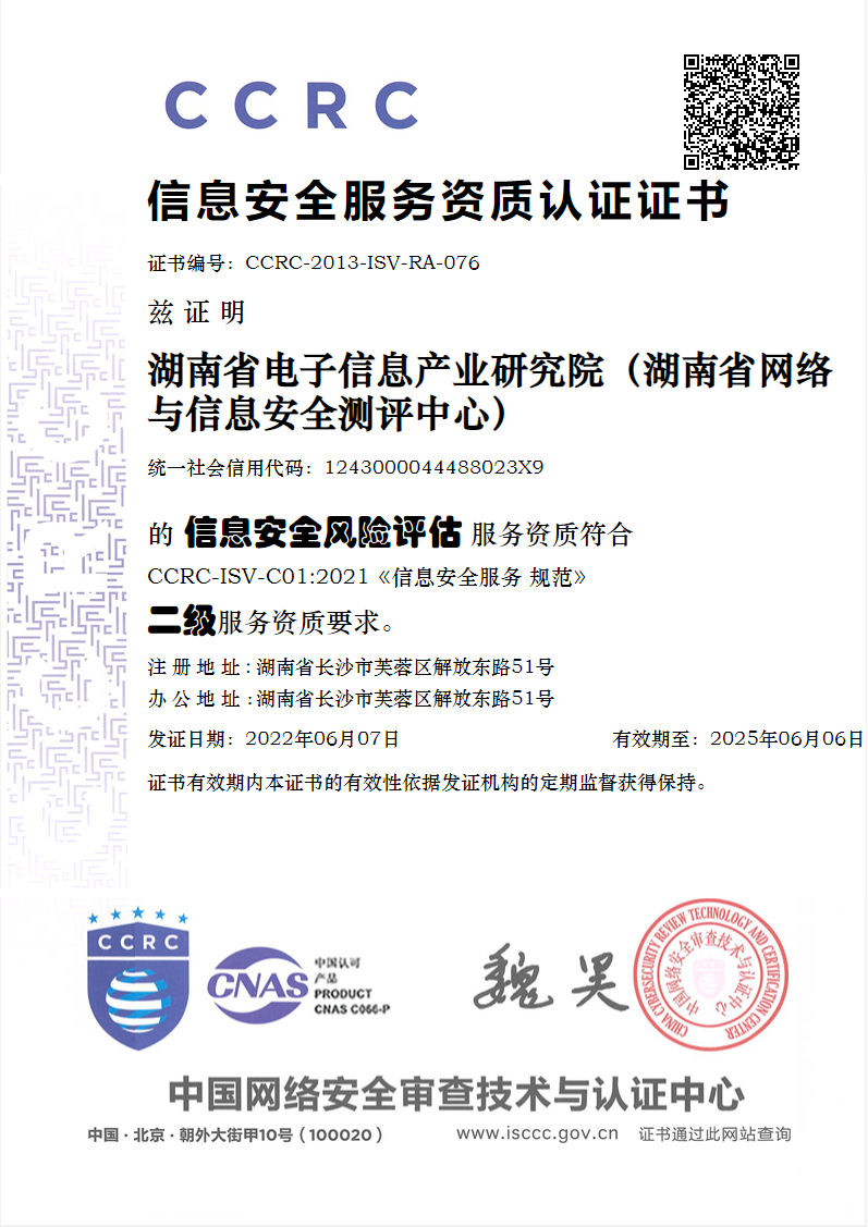 国家信息安全风险评估服务资质证书