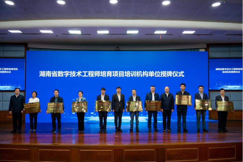 11月1日,湖南省数字技术工程师培育项目启动仪式暨湖南省首期数字技术工程师培训班开班仪式在中南大学举行。我院作为首批获得人社部认定的培训机构,在启动仪式上获授“湖南省数字技术工程师培育项目培训机构”牌匾。