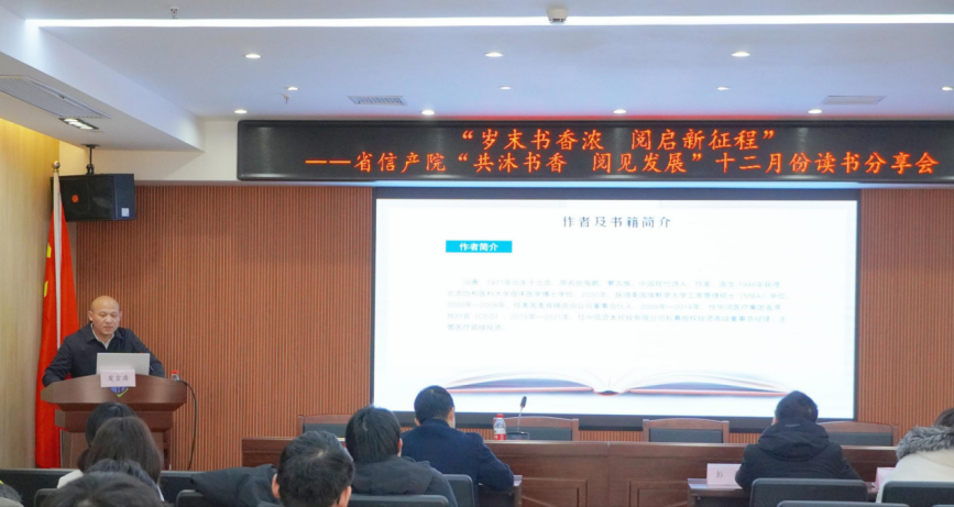 12月31日上午,省电子信息产业研究院召开“共沐书香 阅见发展——岁末书香浓,阅启新征程”主题读书分享会,院党委书记、院长彭景出席会议并讲话,全体院领导班子及全体干部职工参会。