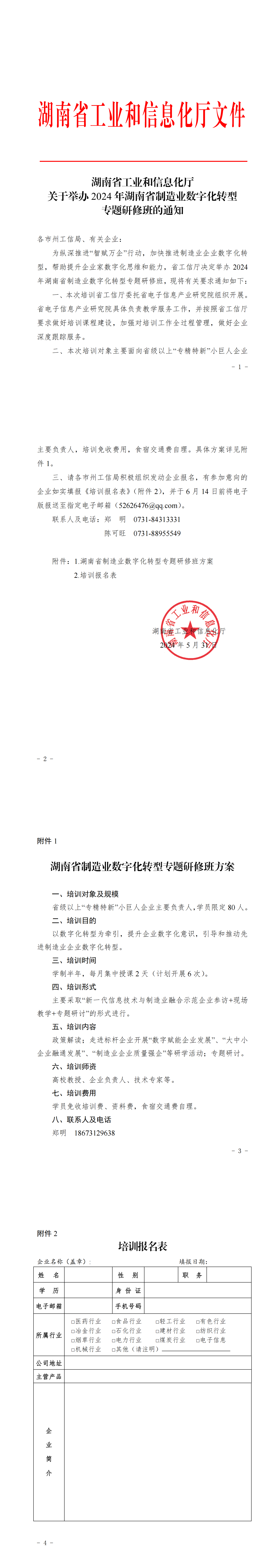 关于举办2024年湖南省制造业数字化转型专题研修班的通知