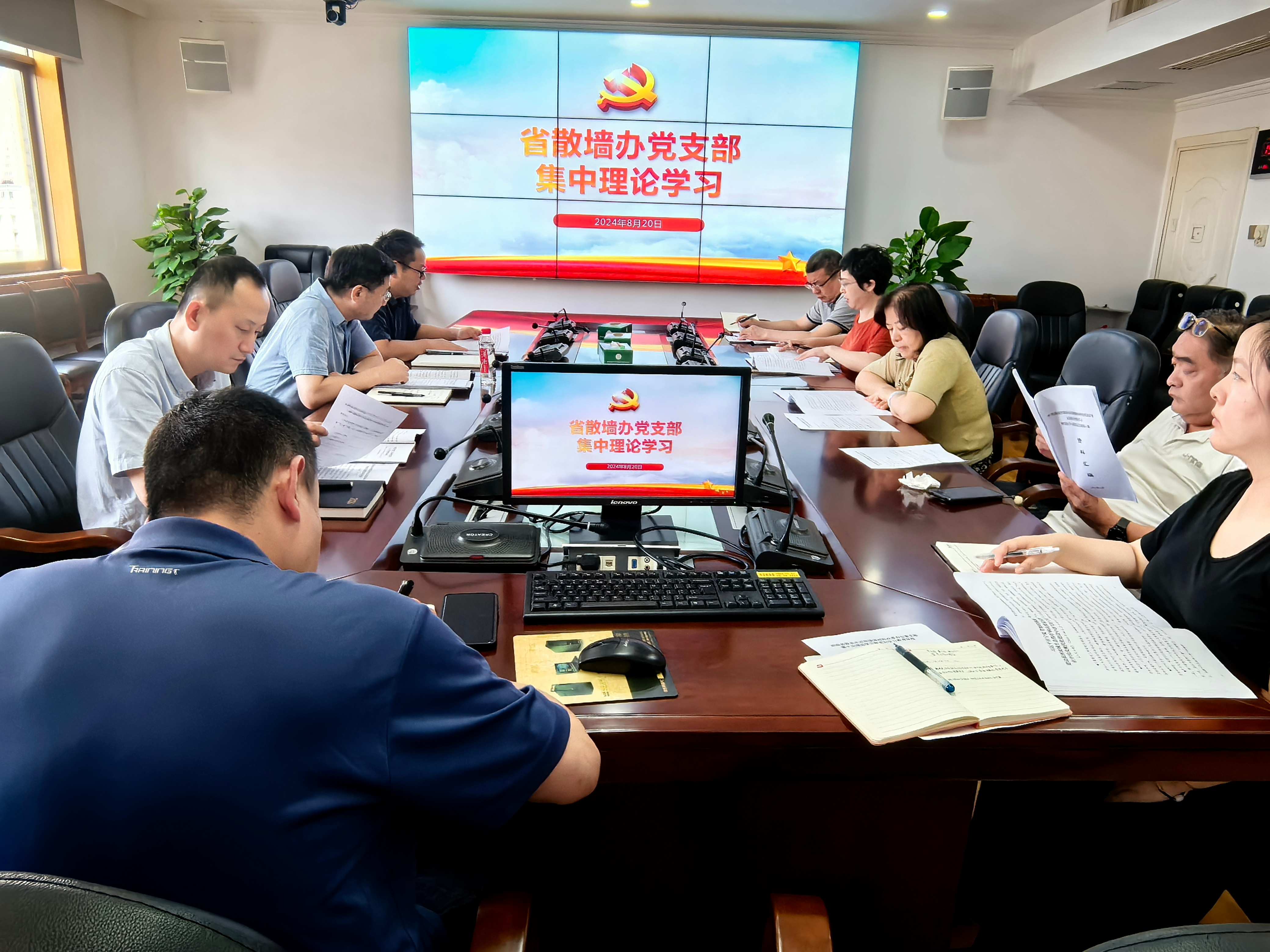 8月20日,省散墙办党支部组织开展2024年第9次集中理论学习,深入学习了习近平总书记在中央政治局第十五次集体学习时的重要讲话精神、在青海、宁夏考察时的重要讲话精神、党纪学习教育相关文件精神,原原本本学习了《中国共产党第二十届中央委员会第三次全体会议公报》《中共中央关于进一步全面深化改革、推进中国式现代化的决定》、习近平总书记关于加快发展新质生产力的重要论述。会议组织观看了党性教育系列片《明纪释法》中的“如何精准把握吃公函问题”和“力戒调查研究中的形式主义、官僚主义”。刘俞结合学习主题作中心发言。