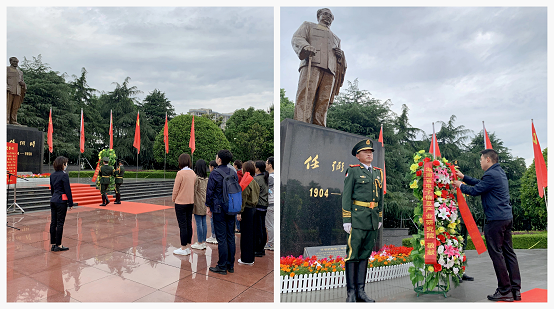 天高云阔,微风轻柔,在任弼时铜像广场,全体人员庄严肃立,向任弼时同志铜像敬献花篮,肃穆敬礼三鞠躬,深切缅怀任弼时同志为中国革命事业建立的不朽功勋。随后,全体党员面对鲜红的党旗重温入党誓词,铮铮誓言响彻广场上空。