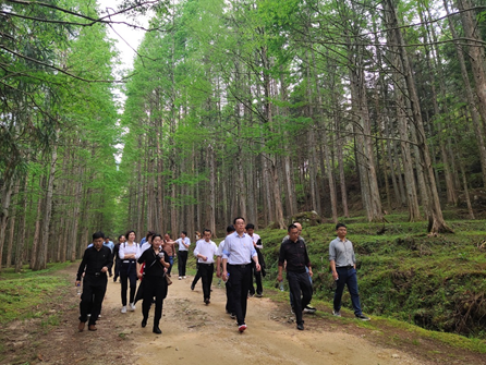 学习研讨交流阶段,学习组将讨论交流的场地放在了当年的红军路上。在礁石林场,学习成员们边走边发言,每一颗红豆杉成了认真的听众,开启了一次行走的学习研讨会。