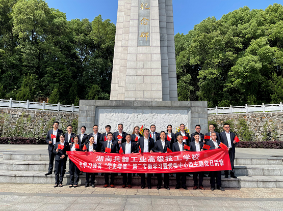 4月29日,阳光明媚,草长莺飞。湖南兵器工业高级技工学校全体校领导、中层干部和各党支部书记前往益阳市烈士纪念碑开展“学史增信”第二专题学习暨党委中心组主题党日活动。悠悠青山,不忘烈士抛忠骨。全体人员面对革命烈士纪念碑,敬献花篮,在校长唐放文带领下重温入党誓词,明初心,担使命。刘丹老师深情朗诵了烈士诗歌。