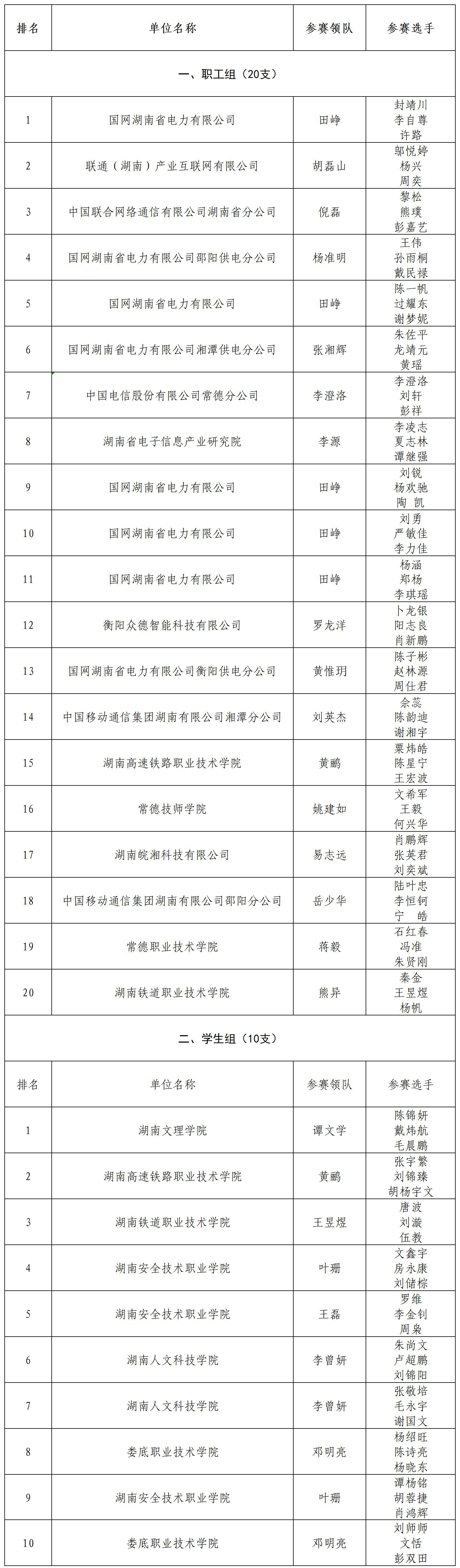 湖南省第一届“智赋万企”工业互联网安全大赛暨2024年中国工业互联网安全大赛湖南省选拔赛入围决赛队伍名单