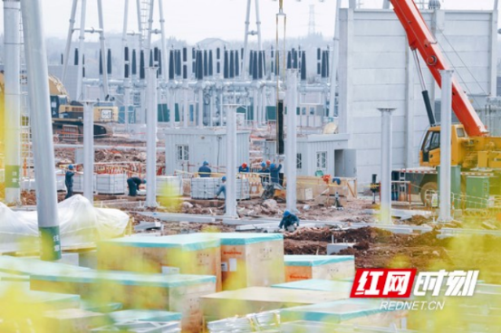 ▲“宁电入湘”配套工程衡阳西500千伏变电站新建工程施工现场。