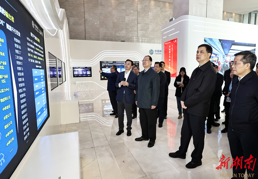 (16日上午,毛伟明在中国移动湖南公司调研。)