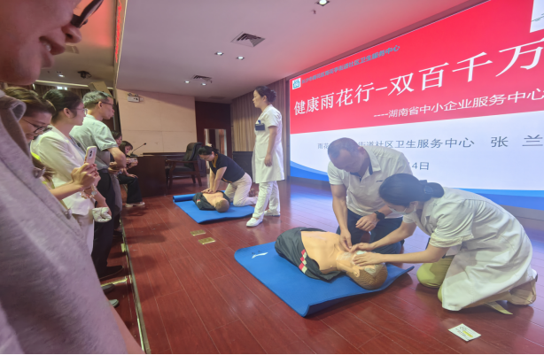 为着力提高广大干部职工应对突发事件和意外伤害的自救互救能力,筑牢健康安全防线,倡导关爱生命文明新风尚,9月14日上午,省中小企业服务中心联合雨花亭街道社区卫生服务中心开展“关爱生命 救在身边”急救知识和技能普及培训,中心及直属单位40余人参加培训。