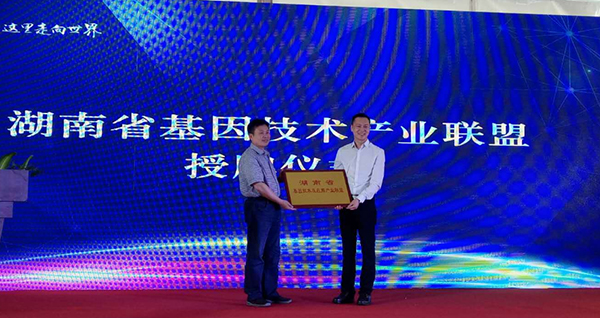 第五届医疗器械院企对接会上,黄宝林副厅长为湖南省基因技术产业及应用产业联盟授牌
