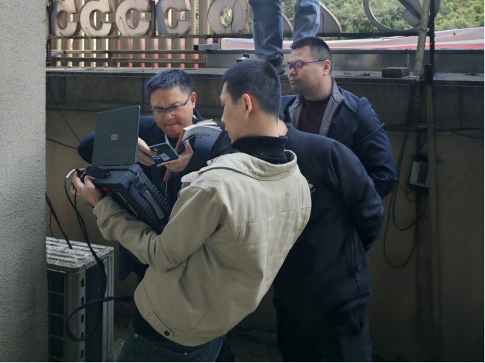 迅速响应,精准定位。当天上午,接到公众移动通信运营商干扰投诉,反映中伟盈丰国际小区基站周边手机信号异常,通话质量差、网络频繁掉线。工作人员通过移动监测车和便携式监测设备开展交叉监测定位,发现该区域存在不明信号占用公众移动通信频段,初步判断为非法无线电设备干扰,测向逼近后锁定干扰源位于中伟盈丰国际小区的地产开发商办公室。经开关机测试,确定信号干扰源为一私自安装的手机信号放大器。