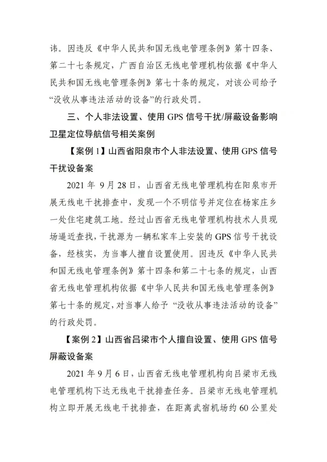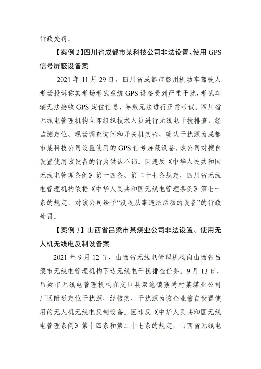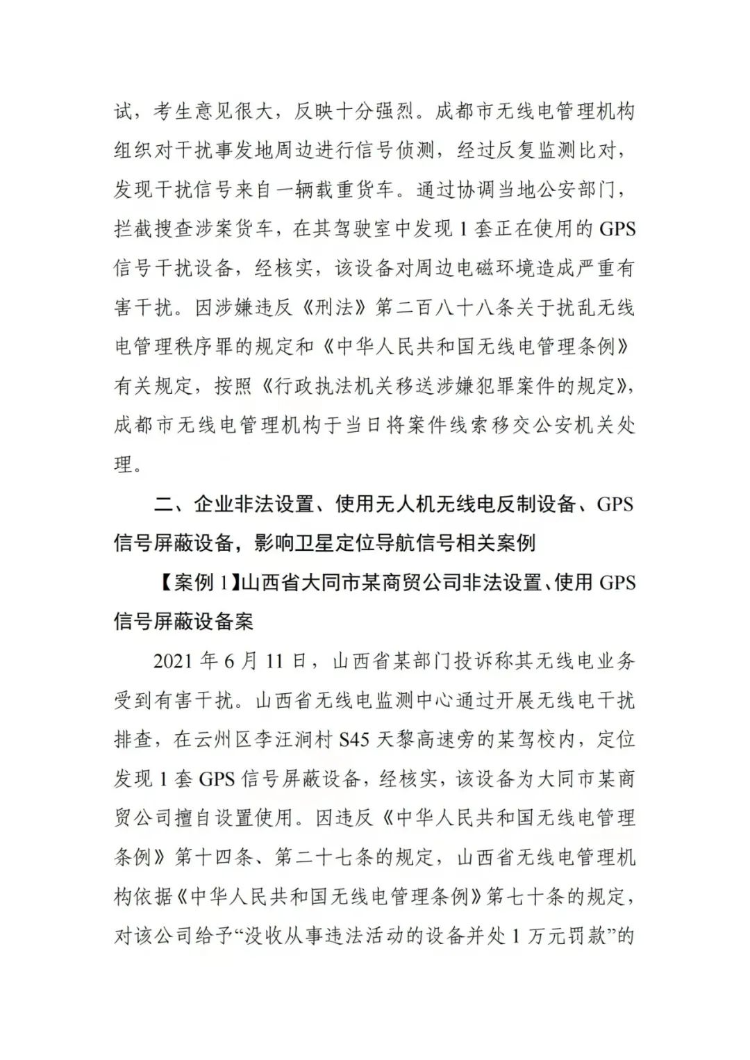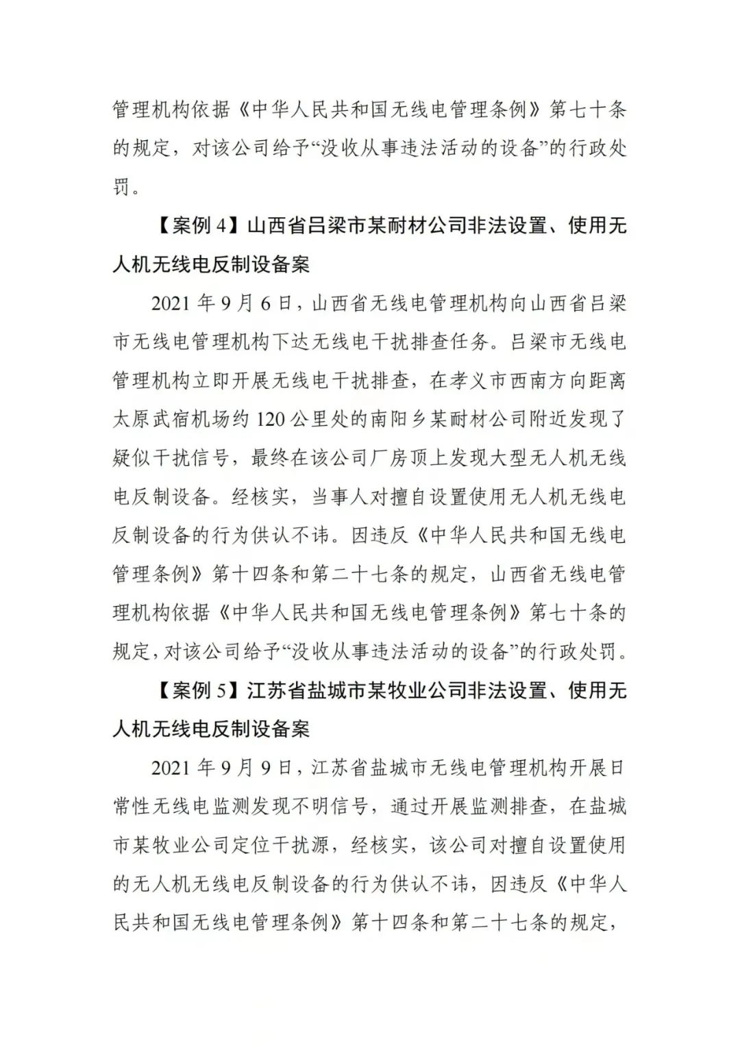 为保护国民经济重要行业无线电频率使用安全,近期,工业和信息化部会同公安部、司法部、国家市场监督管理总局等多部门联合开展严厉打击非法生产、销售和使用无人机无线电反制等设备执法行动。各地无线电管理机构会同有关部门,依据《中华人民共和国无线电管理条例》等法律法规,加大对相关违法行为的查处,截至目前,相关地方无线电管理机构已责令淘宝、京东、拼多多、苏宁易购等网购平台清理下架无人机无线电反制设备及信号干扰器、屏蔽器等未经型号核准的无线电发射设备8600余件;各地已通过向公安机关移送涉嫌犯罪案件、予以行政处罚、责令改正等方式查处非法设置使用相关设备案件110余起。