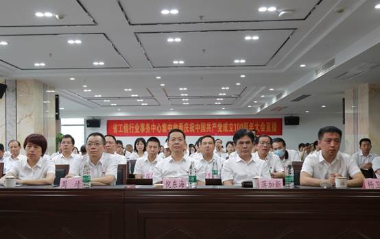 7月1日上午8时,举世瞩目的庆祝中国共产党成立100周年大会在北京天安门广场隆重举行。省工信行业事务中心党委书记、主任倪东海率领班子成员、全体在职干部职工、离退休支委代表120余人集中收看了大会直播盛况。