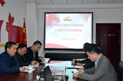11月16日下午,信息中心党支部组织全体党员干部集中学习党的十九届六中全会精神。