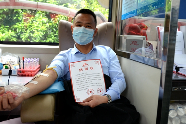 献血者展示献血感谢状