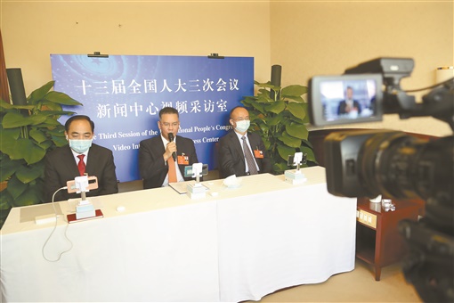 5月27日中午,第三场“十三届全国人大三次会议湖南代表团网络视频采访”活动在北京和长沙两地同步进行。胡伟林、郑建新、文爱华和曹慧泉、阳卫国、唐岳6位代表在湖南代表团驻地,分两批先后接受身在长沙的媒体记者的“云上”采访。