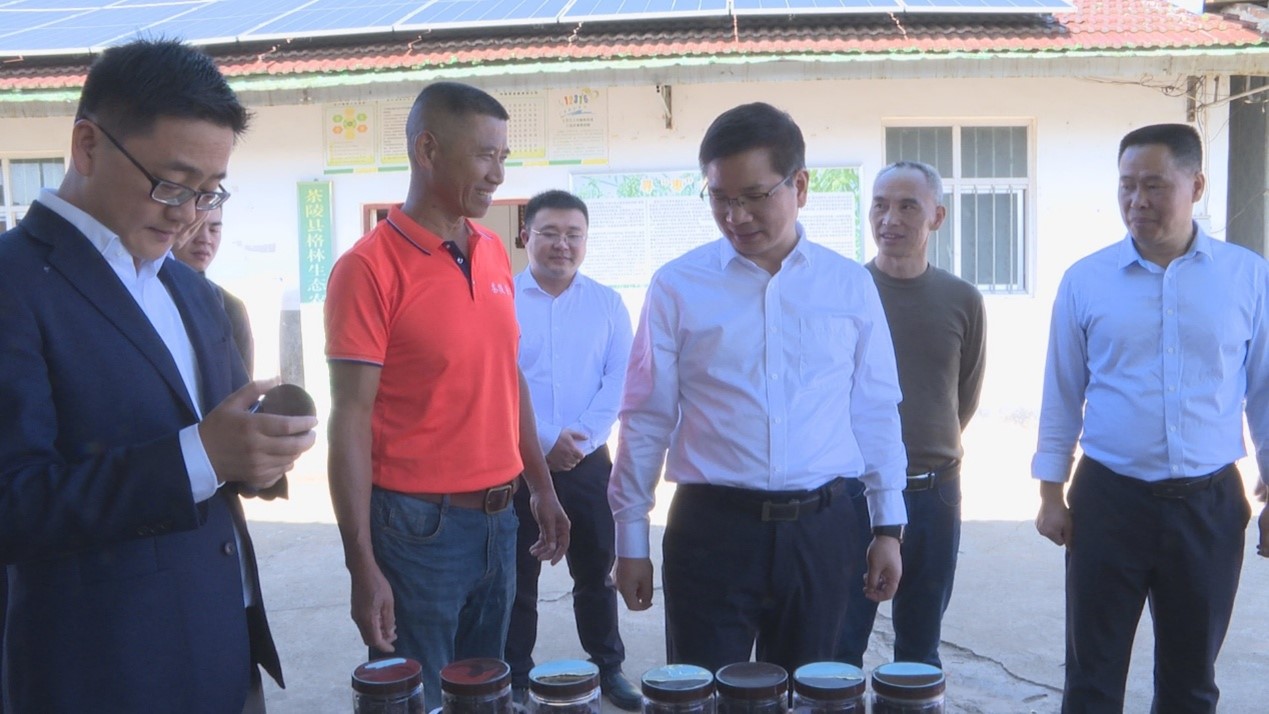 来到茶陵县枣市镇侯泉村,王卫安一行先后察看中秋酥脆枣基地、茶陵慧飞智能科技有限公司、侯泉村电商直播平台,询问农产品种植、加工、销售及农业领域“北斗+”无人机应用情况,并主持召开乡村振兴工作座谈会。王卫安强调,要进一步提高政治站位,强化推动乡村振兴的责任感,充分发挥基层党建的引领力、聚合力,团结带领全体村民不懈奋斗,协同推进“五个振兴”。要进一步抓好项目建设,发挥好项目规划的统揽力、发展力,坚持因地制宜,量力而行,将当前的“输血”工作与引导村民“造血”相结合,依托脆枣、中药材、光伏等资源,做优农特产品加工、销售等环节,提升产品附加值,做大村集体经济,释放产业融合的新动力、新活力;要把“北斗+”无人机技术与农业发展更紧密结合起来,在试点、应用、推广等方面下更大功夫,打造“北斗+”无人机演示培训基地,彰显新技术示范应用的标杆力、带动力。驻村工作队要严守工作纪律、廉洁纪律、生活纪律,尽职尽责做好驻村帮扶各项工作,与支村两委班子团结协作,带动乡风民风、民生福祉不断改善,在广大村民心中留下一支永不撤退的驻村工作队。