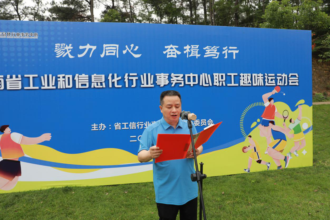 5月9日,省工信行业事务中心举办“戮力同心,奋楫笃行”职工趣味运动会,中心党委书记、主任邓光亮致辞并为获胜队员颁奖,中心全体在职职工参加。