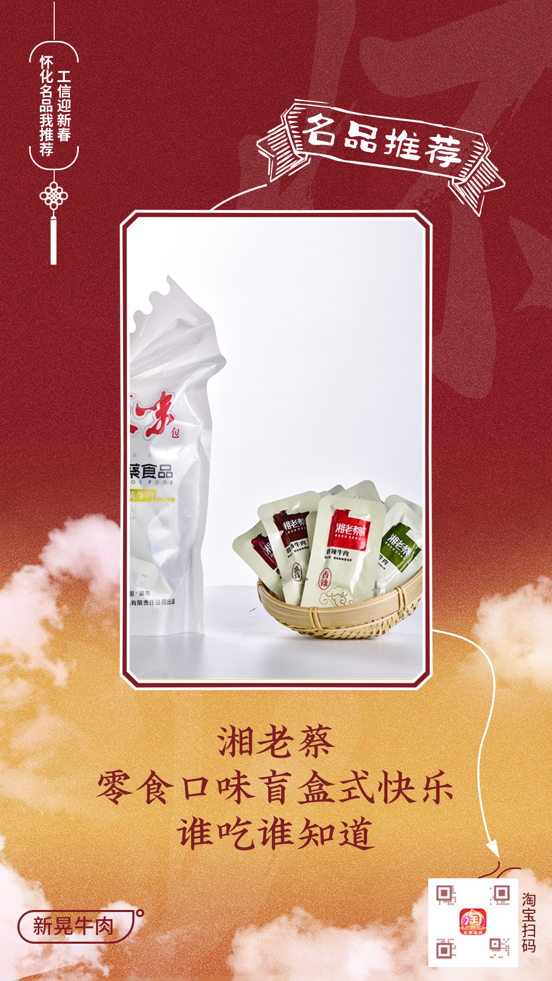 近年来,怀化积极落实消费品工业“三品”战略,扎实推进消费品工业高质量发展,现已培育规模以上消费品工业企业376家,占全市规上企业总数的36.9%,消费名品不断涌现,“福地怀化”火爆出圈。其中,“湘老蔡”鲜牛肉,品质优良,营养价值高,严格按照国家检疫标准,确保肉牛活体健康无病。湘老蔡混合装牛肉零食,各种口味让你感受不一样的美。十方九苓,七出靖州,靖州是中国茯苓之乡,现已建成全国唯一的茯苓科技产业园,拥有全国最完整的茯苓产业链,生产全国最丰富的茯苓产品,成为全国最大的茯苓线上线下交易中心。好山好水出好酒,365天的生产周期,二次投粮,九次蒸煮,八次发酵,七次取酒,然后经分型贮放,三年后调制贮放,五年后包装出厂。沅陵酱酒,生态酿造。怀化着力打造“国际箱包之都”,引进箱包皮具企业136家,生产中高端各式各类拉杆箱、行李箱等包类近200款,入驻国际新秀丽、皇冠、法国大使等品牌,产品畅销全球近30多个国家。怀化箱包“装下你的诗与远方,伴你走过每一段非凡之旅”。
