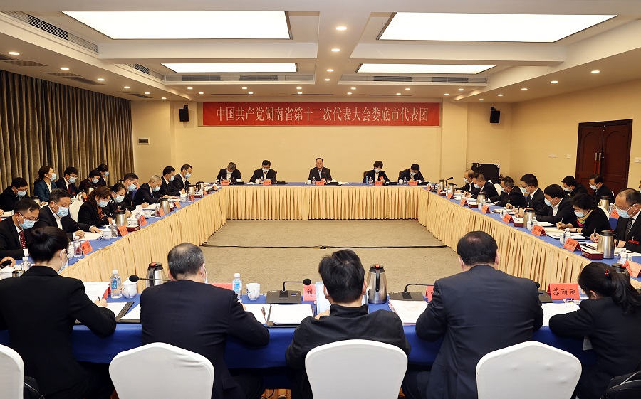 11月26日上午,毛伟明同志来到省第十二次党代会娄底市代表团,与代表们一起讨论党代会报告和省纪委工作报告。