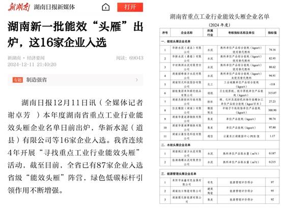 二是树标杆,绿色转型显成效。在近4年的“能效头雁”活动中,中心按照公正公开的原则,对指标数据依据相关标准和规范严格核实,把节能监察和节能诊断结果作为重要依据,在向社会发布结果前公开征求意见,有效保证头雁荣誉公信力。通过持续发布企业的能效、水效、能源管理水平,梳理“头雁”企业在技术创新、节能装备使用、完善节能管理制度等方面的先进经验,引导省内企业对标对表发掘节能潜力,持续不断提升能源利用效率和能源管理水平。中心团结工信节能监察系统,不断发挥“头雁”企业的引领作用,为支撑厅机关做好推进企业绿色转型发展,在面上和点上都取得了较好成效。在面上:“十四五”前三年,全省规模以上工业单位增加值能耗累计下降约22%,提前完成14%目标任务。在点上:一是水泥行业工艺装备水平显著提升,燃料结构不断优化。2023年全省水泥企业熟料单位产品综合能耗比2020年下降9.8%,最好水平从89.68kgce/t下降至74.16kgce/t,达到标杆水平的熟料产量比例从不足4%上升至33%,基本完成行业“十四五”节能降碳目标,华新株洲、中材株洲、华新道县先后荣获国家能效“领跑者”称号。二是有色金属行业工艺技术不断改良更新,能耗指标持续降低。山能环保成功完成氯氨法电解锌工艺技术革新,比传统酸法工艺节能约250kgce/t,能耗指标大幅优于国标先进水平;株冶有色通过工业循环水系统改造、锌锭生产线自动化改造、废焦粉回收利用技术等技改不断降低能耗水平,成功摘取国家能效“领跑者”称号。