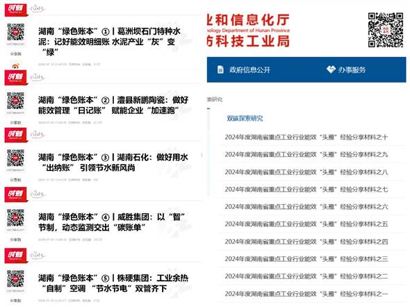 三是强宣传,品牌效应利长远。活动通过中心网站、厅网站、红网、新湖南、生态环境频道等新闻媒介进行广泛宣传,相关新闻报道引致大量行业内外的关注和交流,点击量屡屡突破百万,形成知名度高的热点活动。2024年,中心联合“红网”策划推出系列报道湖南“绿色账本”,对5家“头雁”企业节能节水经验进行集中宣传和报道,收获了110万的浏览量和好评点赞,并被其它主流媒体争相转,充分唱响了“头雁”企业节能标杆的品牌,在我省工业企业中营造出了学习“头雁”、赶超“头雁”的良好氛围。历次活动形成《能效“头雁”企业节能经验分享汇编》、《湖南“绿色账本”》等成果,在经验交流会,节能宣传周、教育培训等场合广泛传播,进一步扩大了影响力,激发了更多企业加大在能效领域的研发投入热情,不断推动行业技术创新和进步。