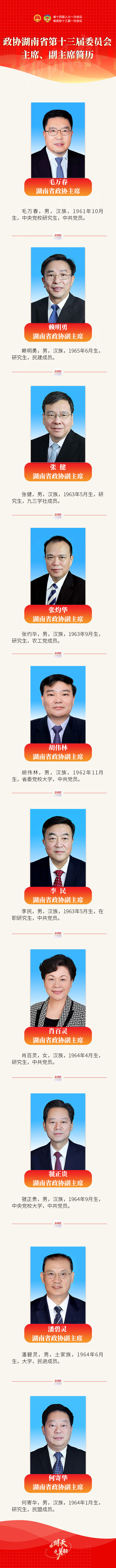 第十三届湖南省政协主席、副主席简历