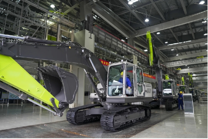 走进土方机械园,一只只机械臂有韵律地挥舞,一台台智能设备有节奏地往来穿梭,一台台智造精良的挖掘机在这里诞生。