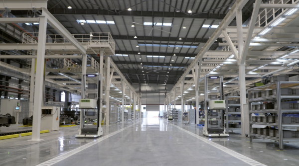 一路走一路看,只见迎面而来的配送机器人灵活运输着各式零部件;双立柱式翻转机器人将数吨重的下车架轻松夹起;电子屏实时显示着智慧运营系统,各设备工作状态、当日工作量等信息及数据一目了然。