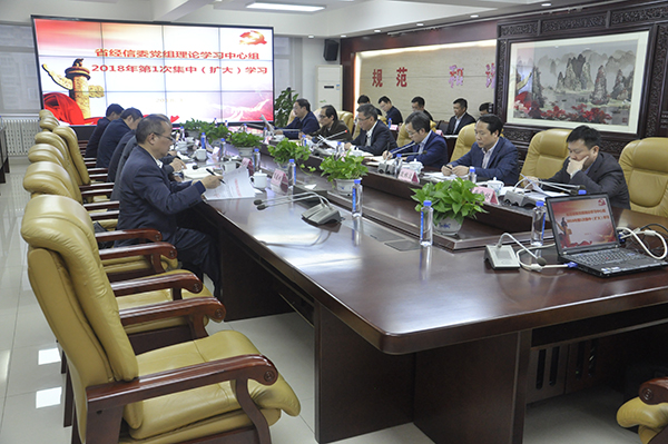 3月2日,省经信委举行2018年党组理论学习中心组第1次集中扩大学习。集中学习由委党组书记、主任曹慧泉同志主持,委领导李志坚、陈松岭、殷林波、黄东红、黄宝林、熊琛、黄学工、刘平凡、刘辉、廖廷球参加,委机关各处室主要负责同志参加学习。