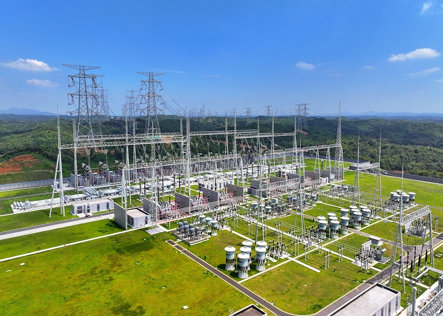 位于长沙县的南昌至长沙1000千伏特高压潇湘变电站,一组组特高压设备正在稳定运行。